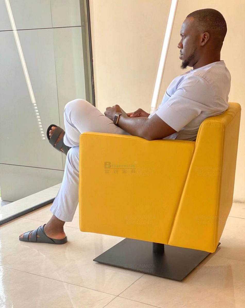 Brighten up any space with our vibrant yellow swivel lounge chair.